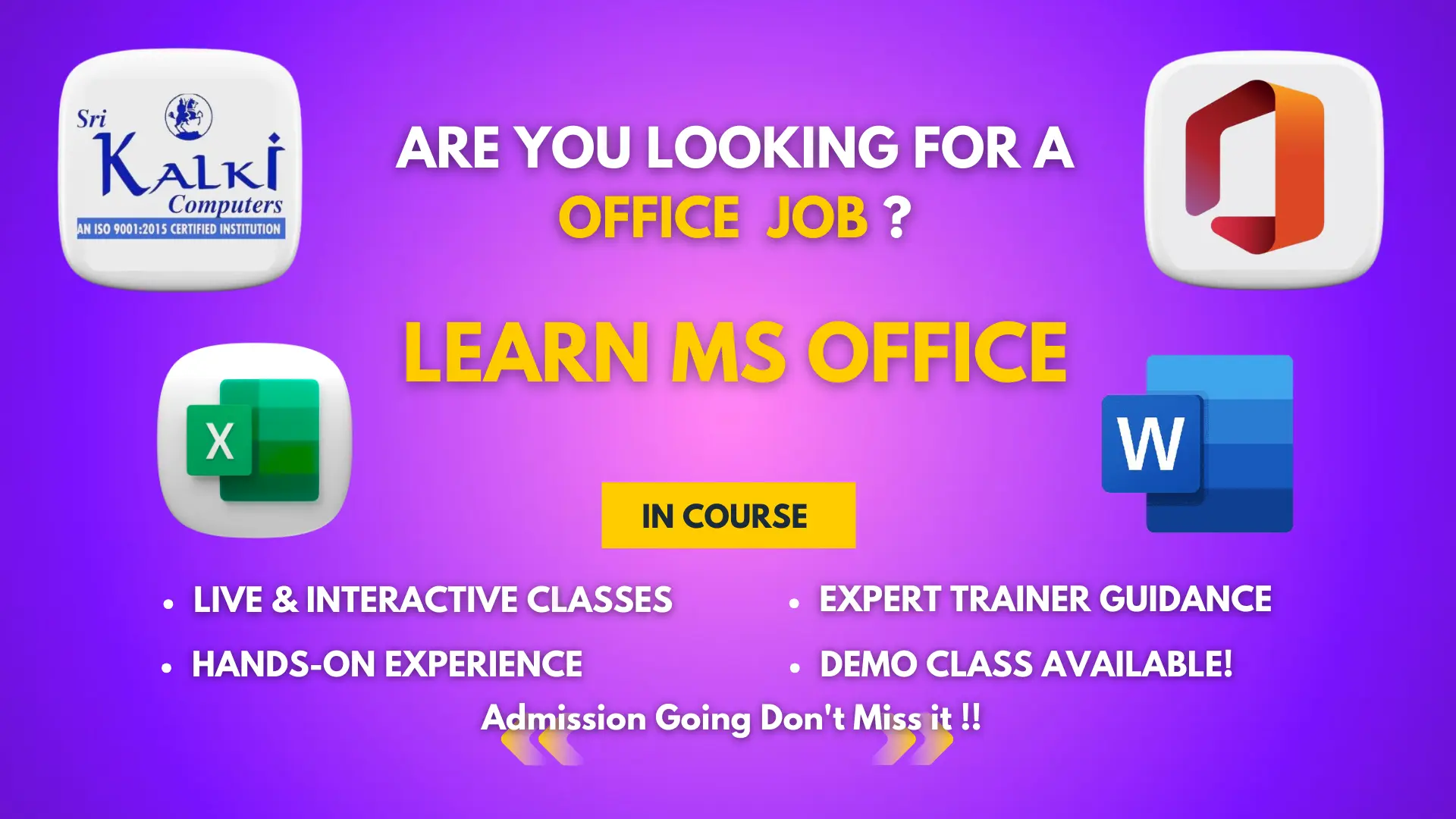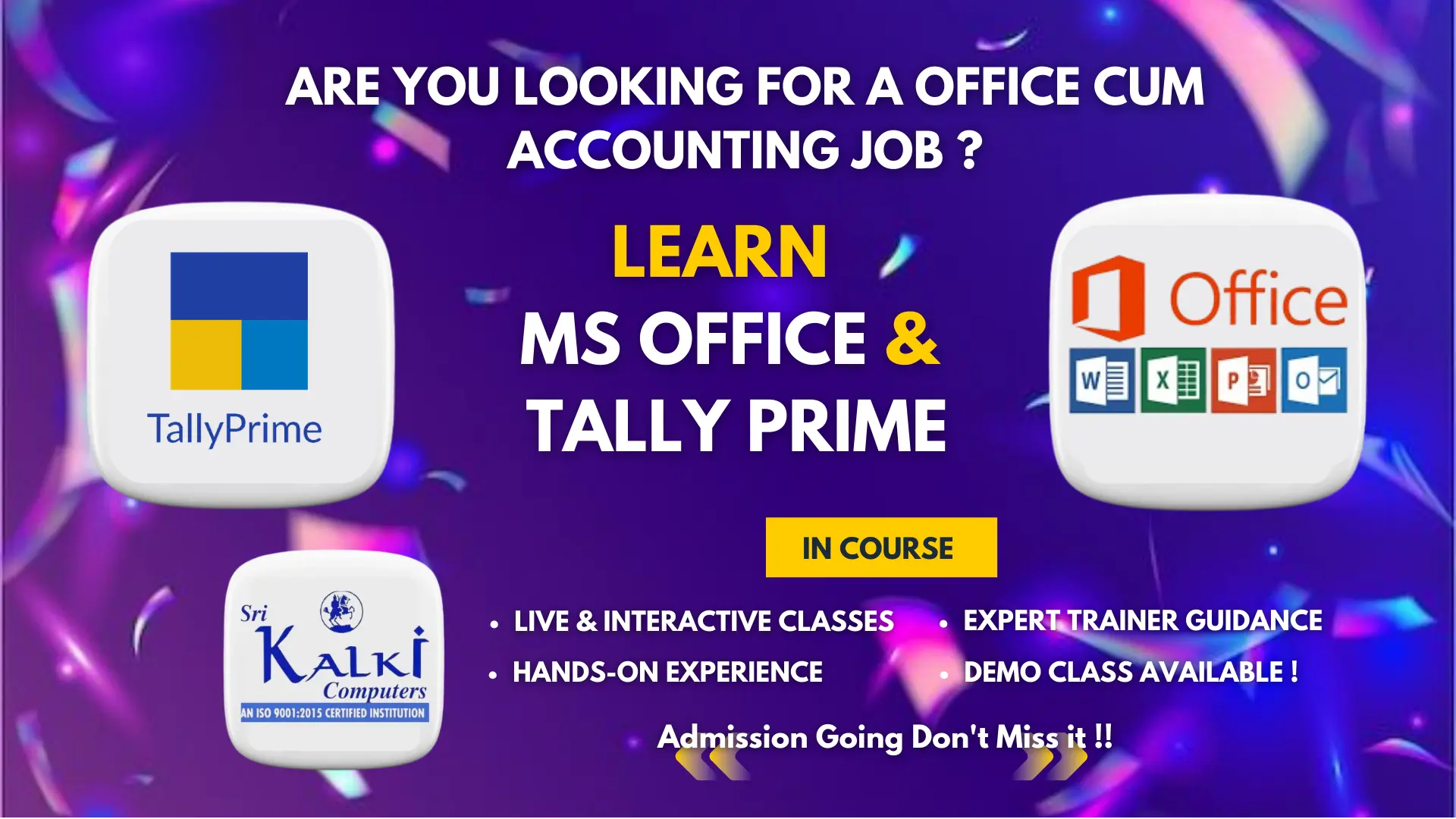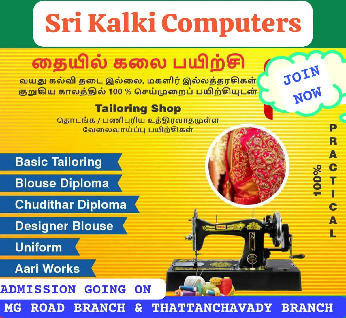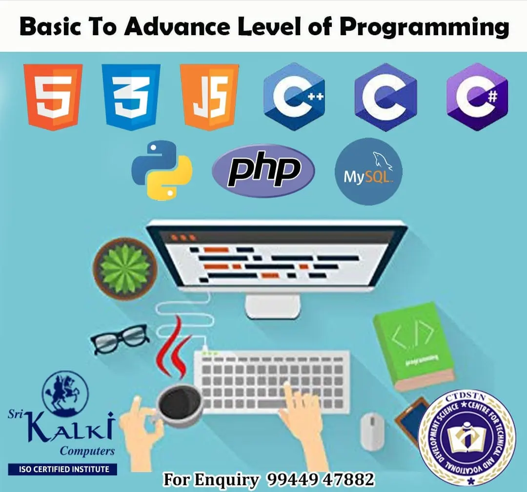 Sri Kalki Computers is a Premier Vocational and Professional Education Institute started in 1998 dedicated to bridging the gap between Traditional Education and Industry-Relevant Skills. We specialize in offering Comprehensive Courses in Computer Applications, Tailoring, Fashion Designing, Teacher Education & Spoken English and other Career-Oriented Programs.